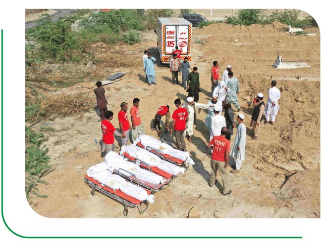 Edhi Foundation helps arrange burial plots, coordinates transportation of the deceased, and manages paperwork related to burial permits and certificates.